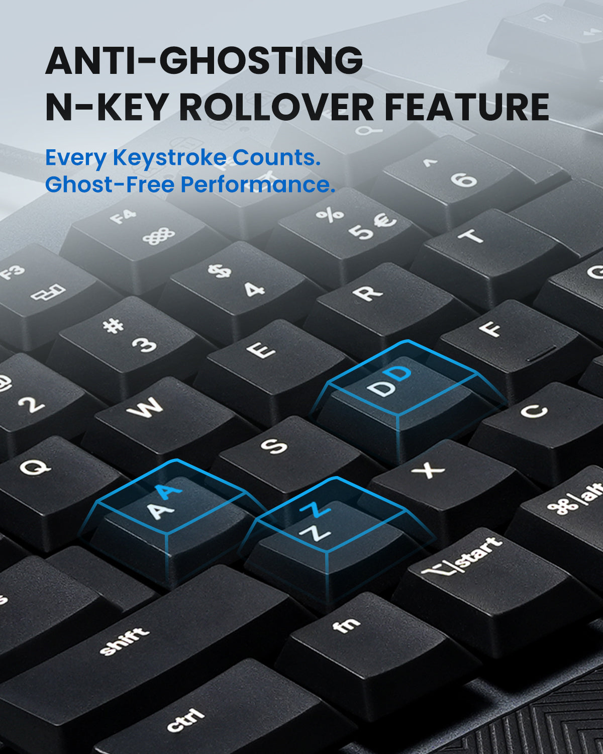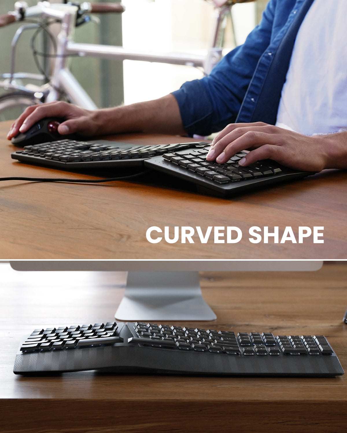 • Curved Rows & Ergonomic Keycaps: Stepped, curved key rows support a natural typing posture and help reduce fatigue during long sessions. Curved keycaps with flatter tops and back edges enhance fingertip comfort and control.