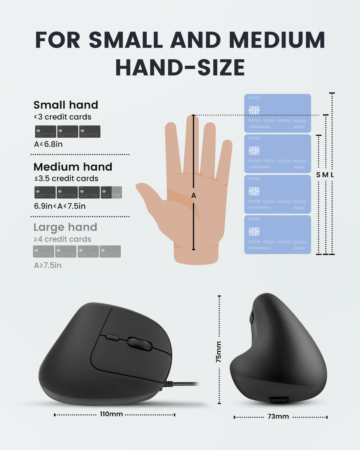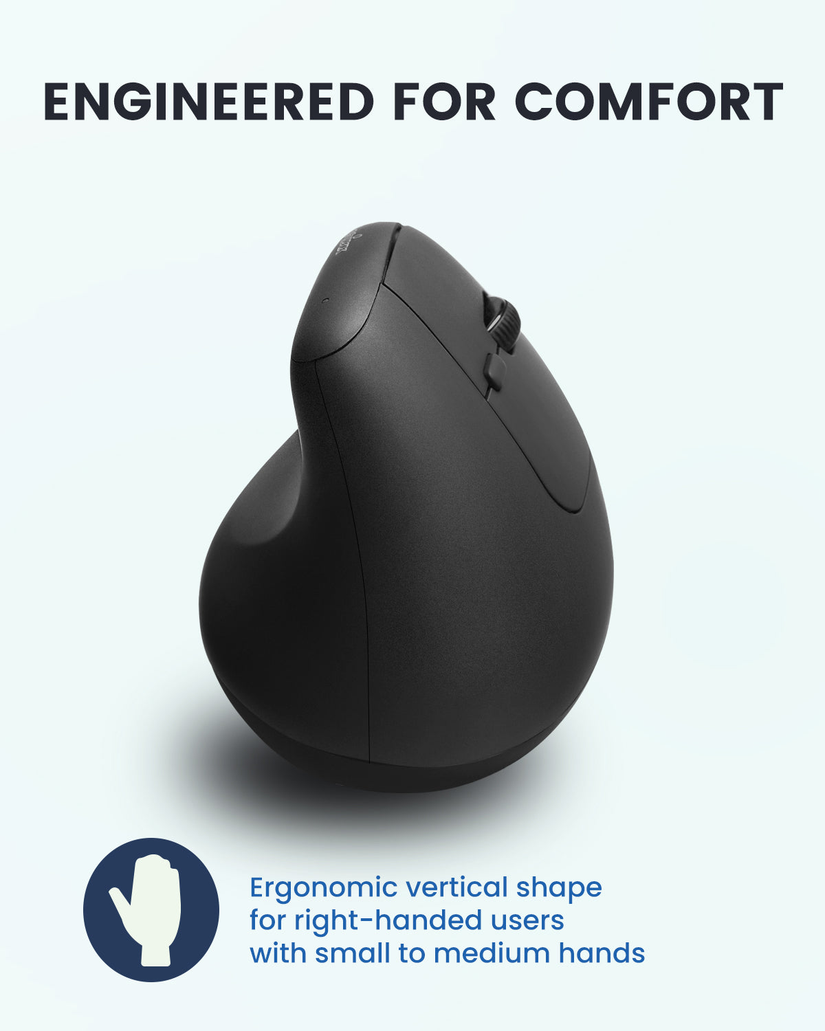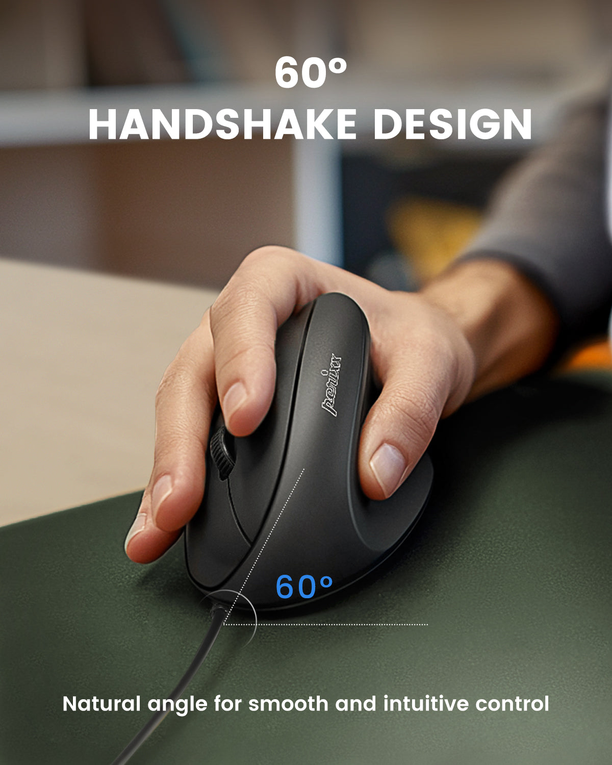 - REDUCE HAND STRAIN WITH VERTICAL DESIGN – Ergonomic vertical shape promotes a natural handshake position, minimizing wrist twist to alleviate discomfort and fatigue—ideal for extended office tasks.